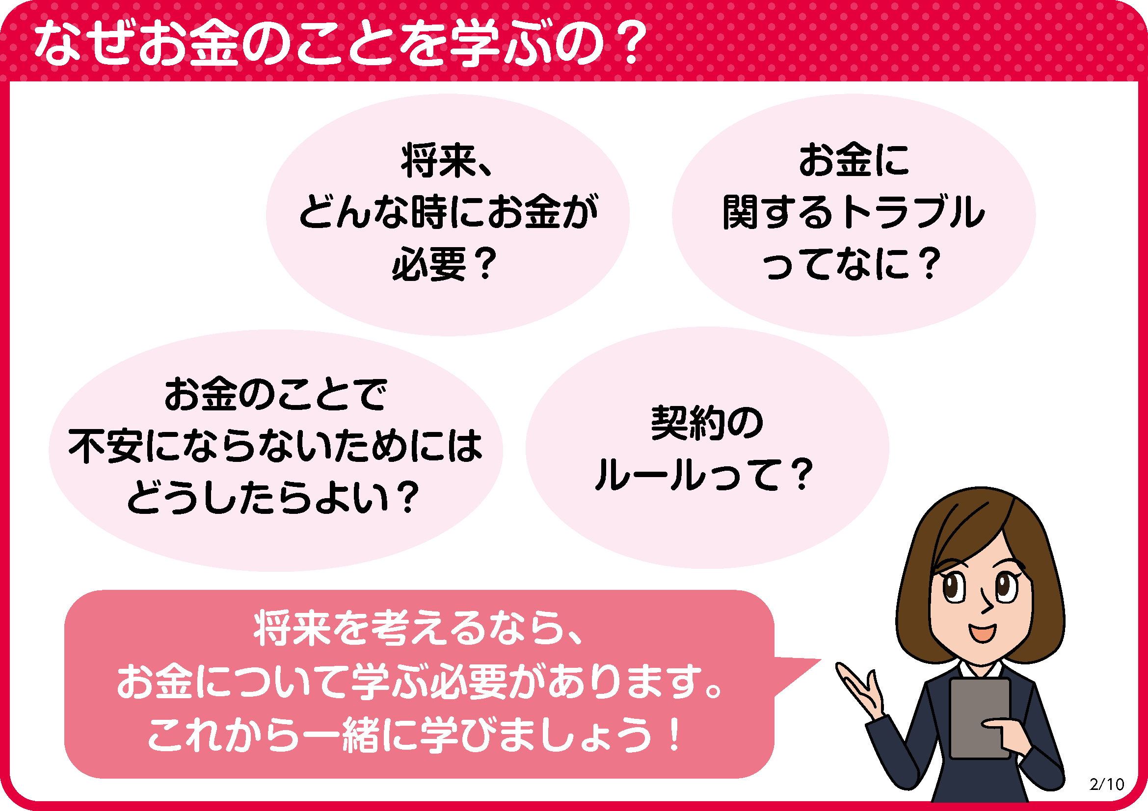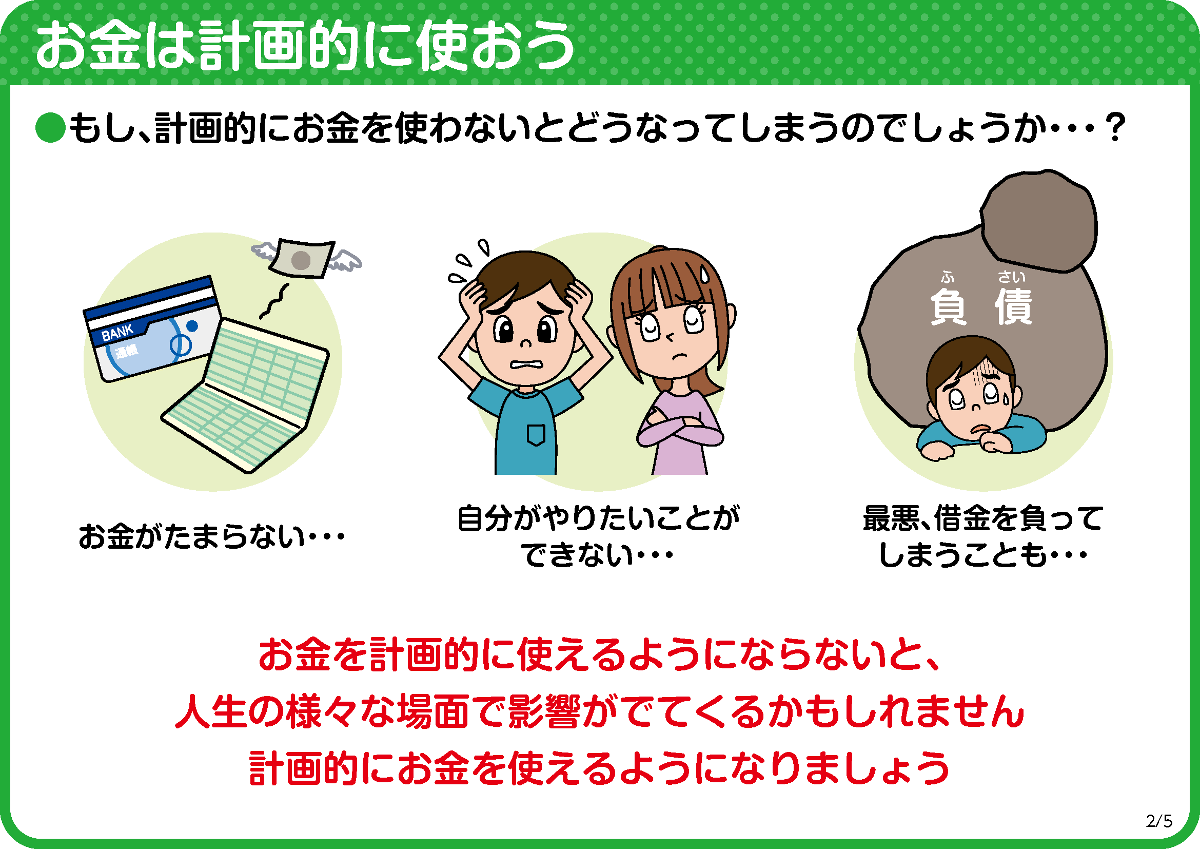 お金を賢く使ったり、管理する力、つまり「金融リテラシー」を高めていきましょう。