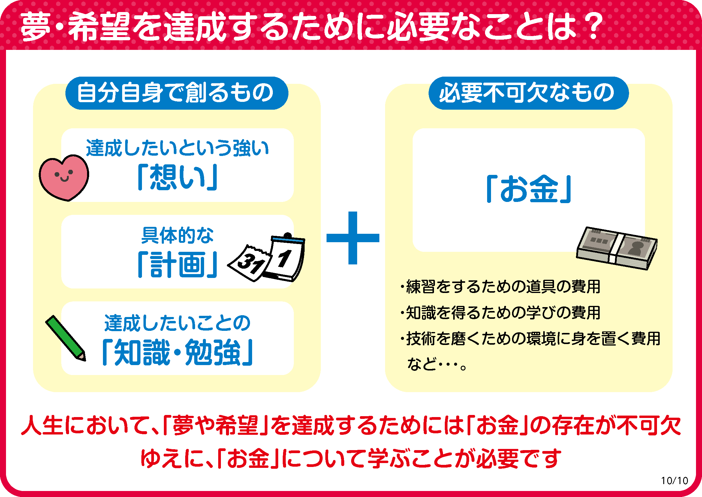 将来の夢や目標を叶えるためには、お金の存在が不可欠であるということを理解しましょう。